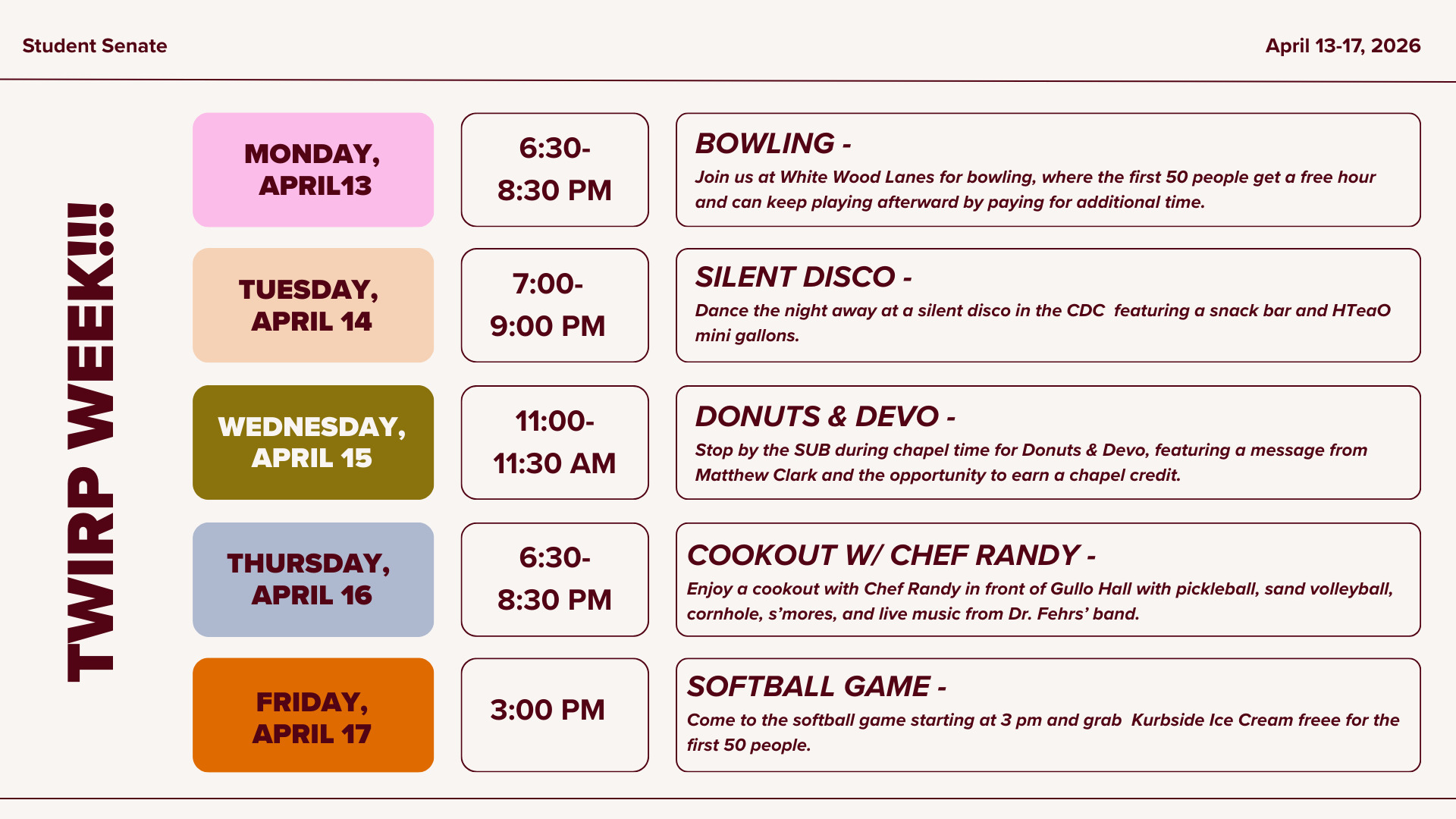 - F: 8am-Noon